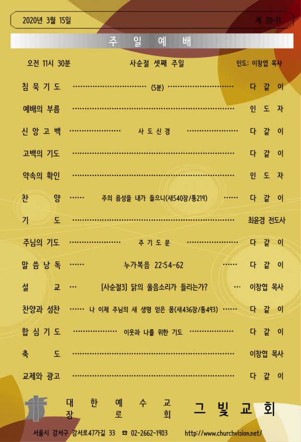 2020년 3월 15일 사순절 셋째 주일 예배는 실황으로 영상을 통해 예배를 드립니다.
