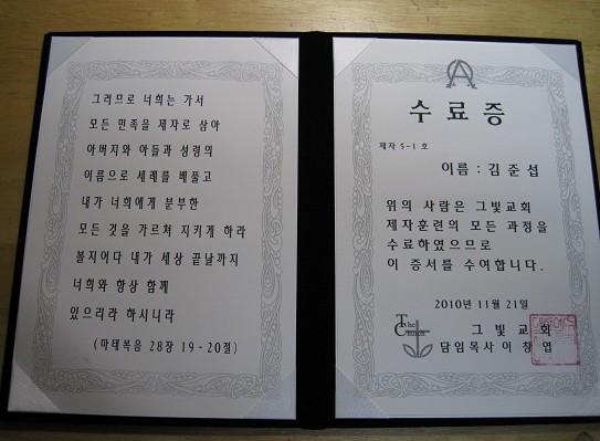수료를 받을만큼 제자가 되지 못했다고 생각합니다.