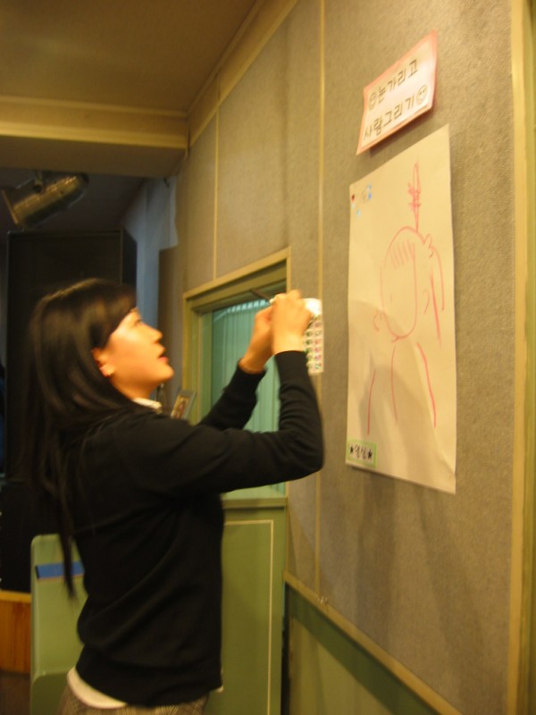 아이들의 그림을 데코해주시는 유경희 선생님 ^-^