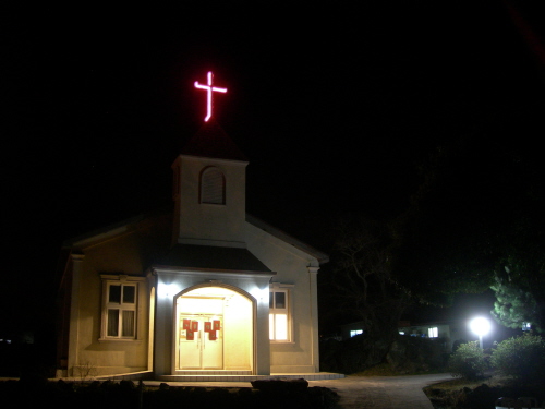야간의 납읍교회 모습입니다.
